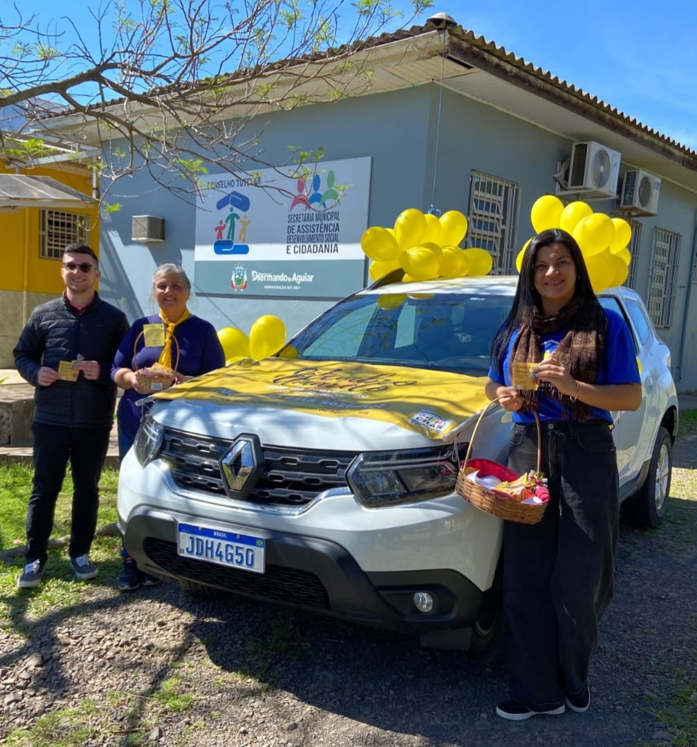 Durante as visitas, foram distribuídos materiais informativos e sementes de girassol, símbolo escolhido para marcar a campanha no município...
