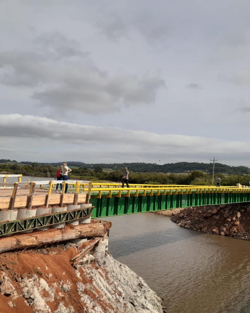 A estrutura provisória foi necessária após a ponte original ser danificada pelas enchentes de maio do ano passado, quando um dos pilares foi levado pela força das águas. Desde então, o trânsito no trecho estava bloqueado, impactando a mobilidade da população.