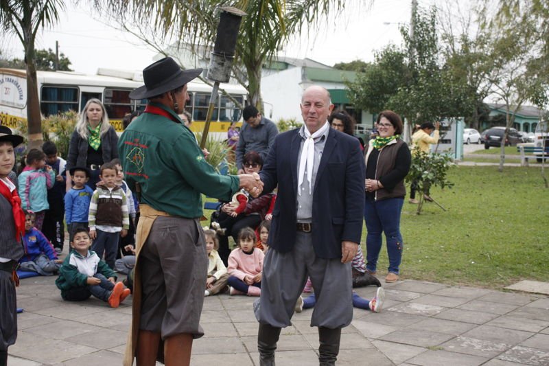 A cerimônia contou apresentações artisticas das escolas municipais. Peões e prendas da Escola Valentim Bastialnello cantaram e declaram poesias em homenagem ao evento. Alunos das séries iniciais da EMEI Criança Feliz e do Pré 2 da EMEI Valentim Bastianello também prestaram homenagens. O Patrão do Piquete de Laçadores Tropeiros do Ibicuí, acompanhado de peões e prendas, entregou ao prefeito municipal Claiton Ilha (MDB), uma centelha da chama crioula. A chama permanecerá acessa na praça até o final das atividades farroupilhas no município.