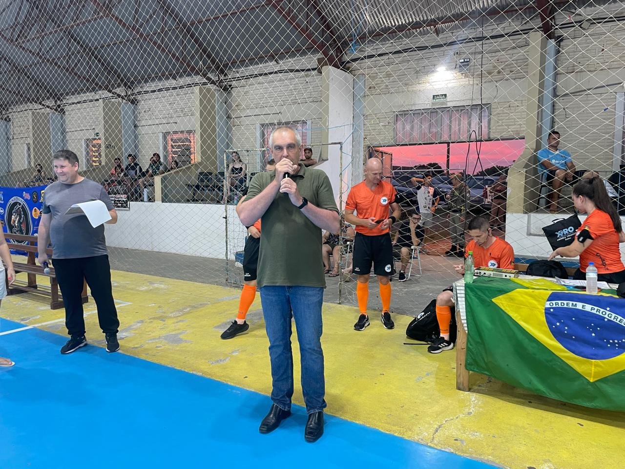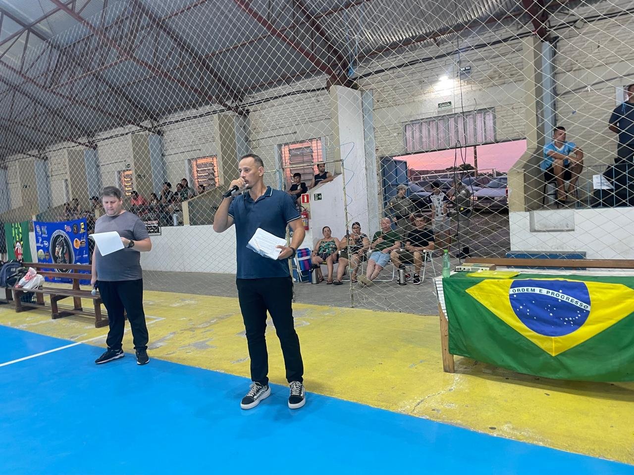 O prefeito Jorginho Saidelles foi recepcionado pelas autoridades locais e participou do protocolo oficial de abertura das finais, ao lado do prefeito de São Pedro do Sul, Fernando Pillar Cézar, e do vice-prefeito Bruno Pinheiro, reforçando a integração entre os municípios por meio do esporte e valorizando os atletas da região.
