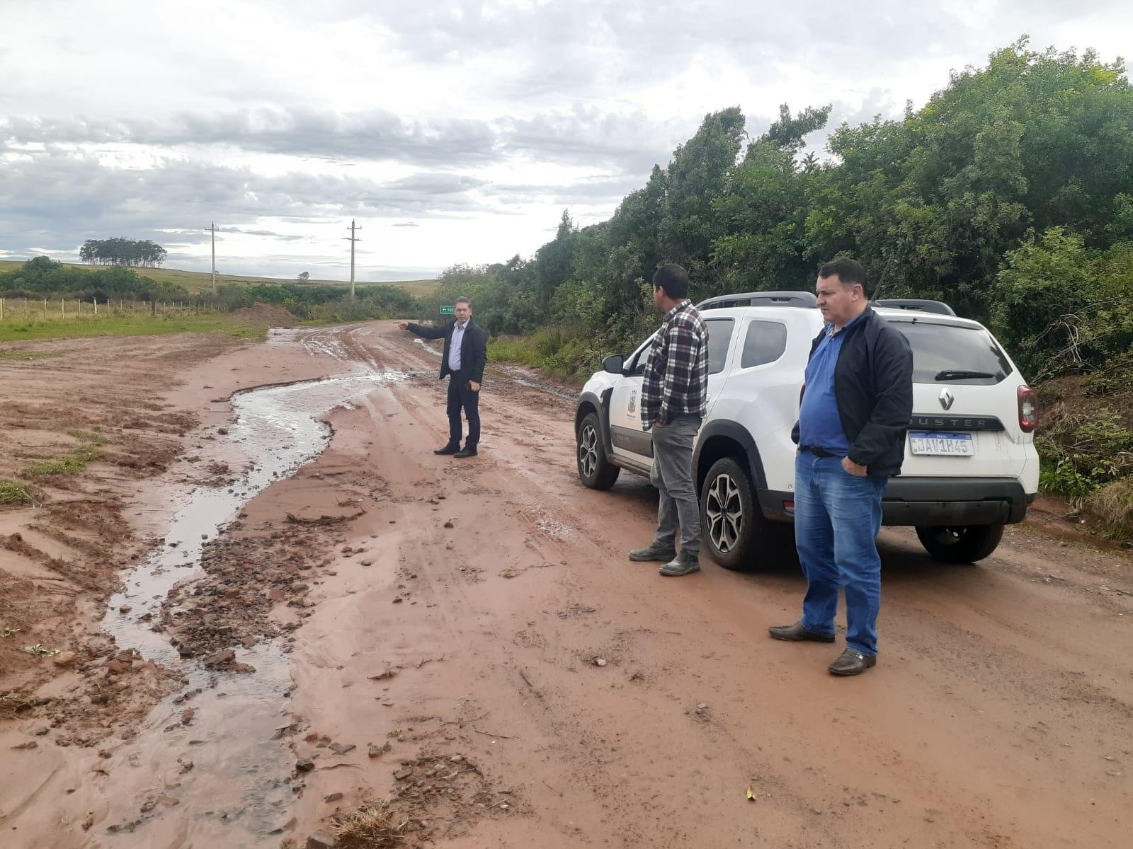 Na tarde desta sexta-feira (09), o prefeito de Dilermando de Aguiar, Jorginho Saidelles, acompanhado do vice-prefeito Marcelo Dotto e do secretário de Obras, Rodrigo Reis, estiveram na estrada do Rincão do Pinheiro, interior do município. A vistoria teve como objetivo identificar os danos causados pelas recentes chuvas e planejar ações imediatas de recuperação.