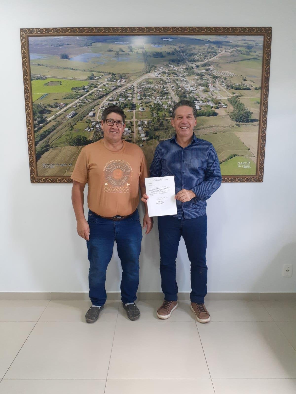 Na tarde de sexta-feira (11), o prefeito Jorginho Saidelles recebeu o patrão do CTG Herdeiros da Tradição, Clóvis Reis da Silva. Na ocasião, foi oficializada a doação de cinco portões para a pista de rodeios do Parque de Eventos Walter Jobim, num valor total de R$ 3.000,00, custeado pela entidade tradicionalista.