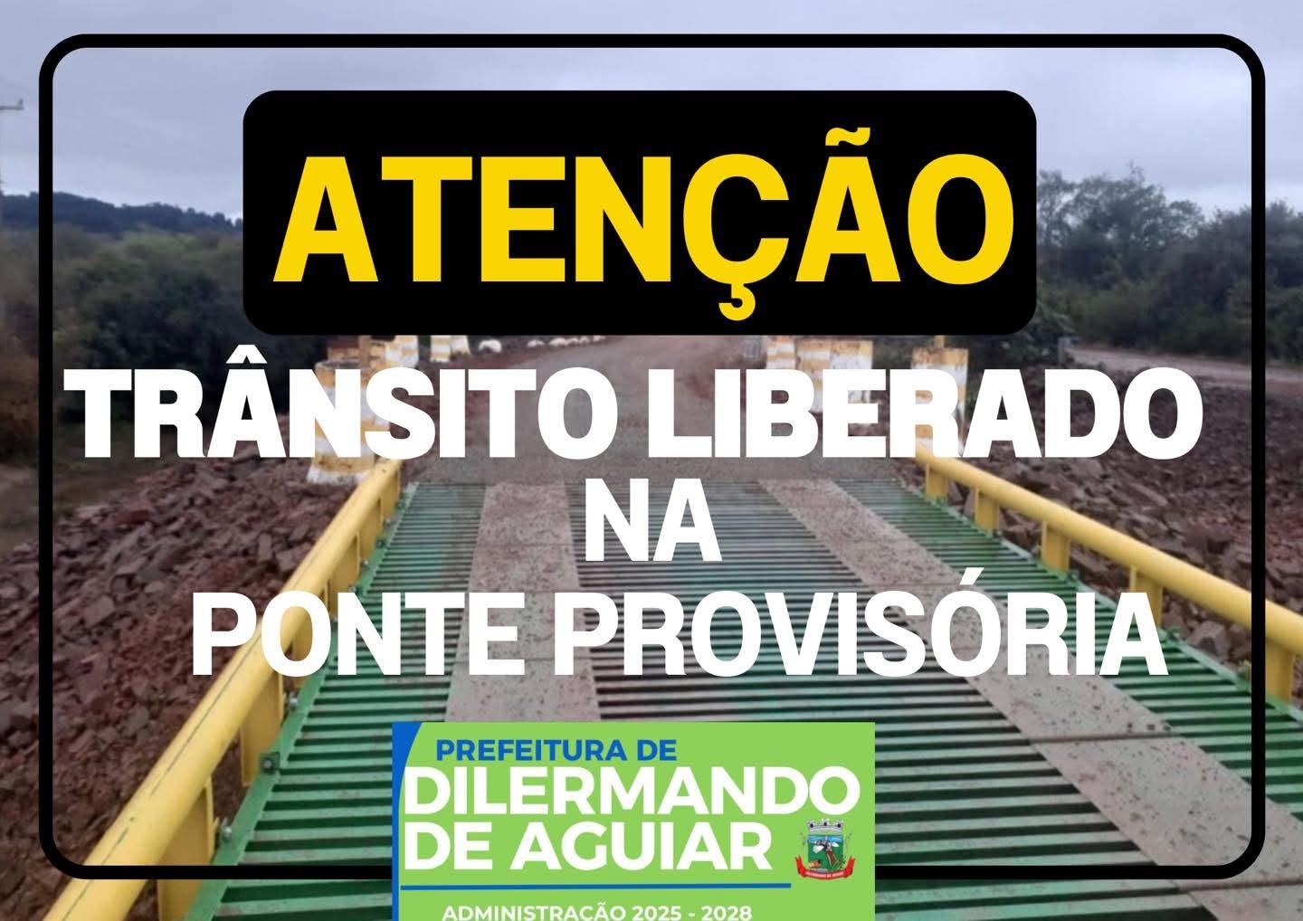 A Prefeitura Municipal de Dilermando de Aguiar informa que o trânsito está liberado na ponte provisória que liga o município a São Pedro do Sul, após a conclusão dos serviços de manutenção realizados nesta quinta-feira (15).