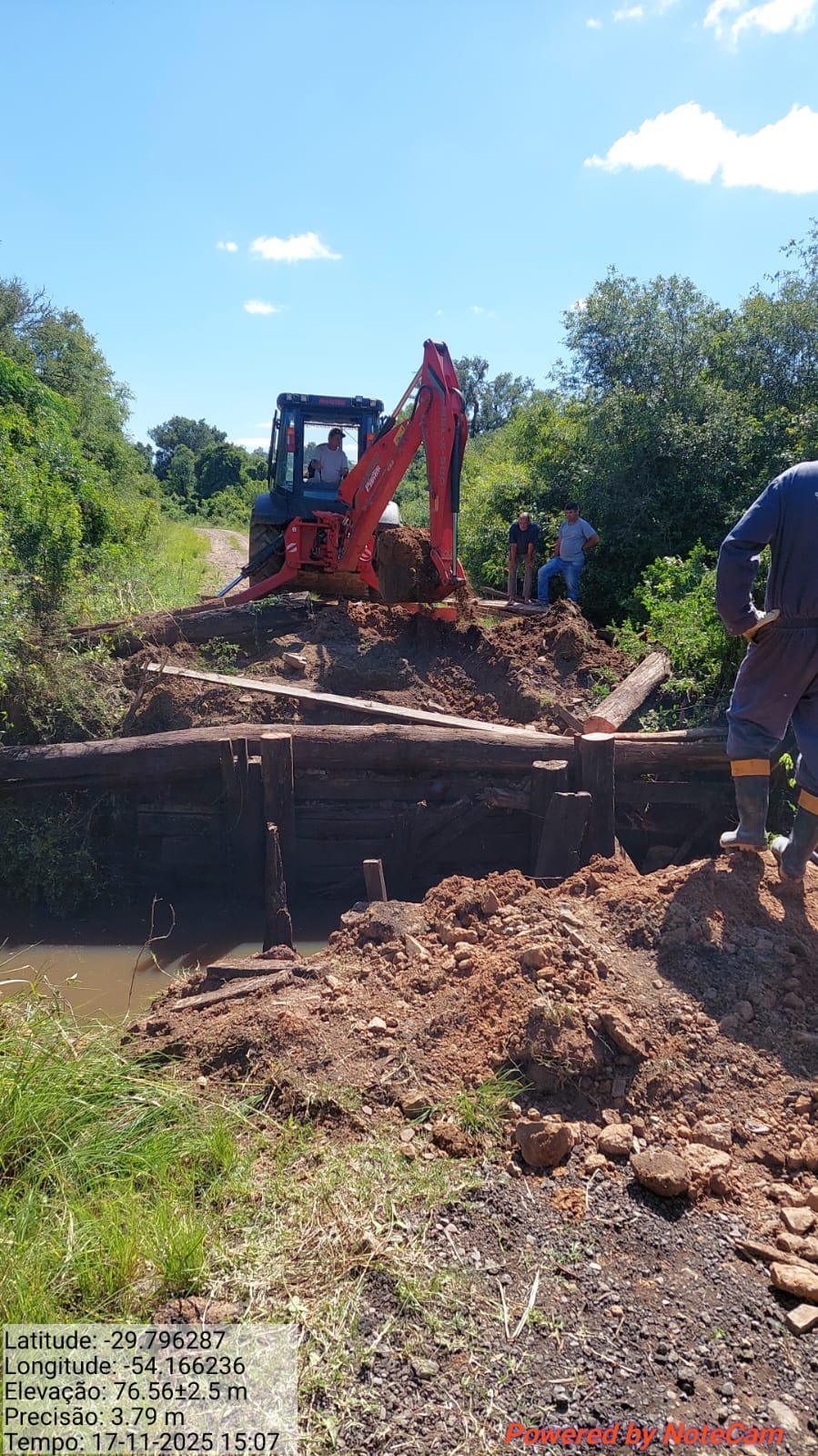 A Administração Municipal de Dilermando de Aguiar, por meio da Secretaria de Obras, informa à comunidade que desde segunda-feira, (17) de novembro, até quinta-feira, (20) de novembro, a equipe da pasta está trabalhando na reconstrução completa da ponte que liga a estrada de CHÁCARA a PASSO DO BENTO.