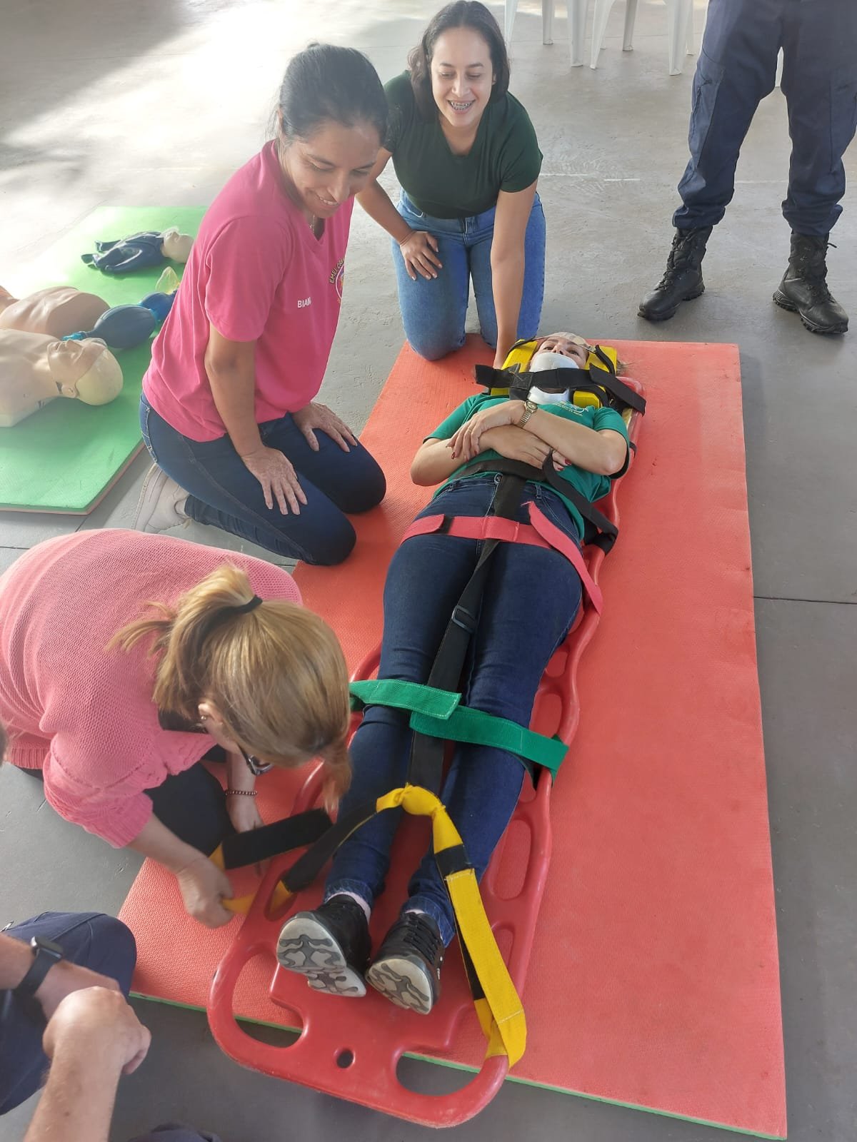 Durante a capacitação, foram utilizados equipamentos de primeiros socorros e Equipamentos de Proteção Individual (EPI), levados até o local por meio da viatura ATP 1674. A parte teórica ocorreu nas dependências do CAP, enquanto a prática foi realizada no pátio, com simulações controladas de incêndio, utilizando materiais combustíveis como madeira, óleo diesel e gasolina, sempre com o acompanhamento seguro de um militar devidamente equipado.