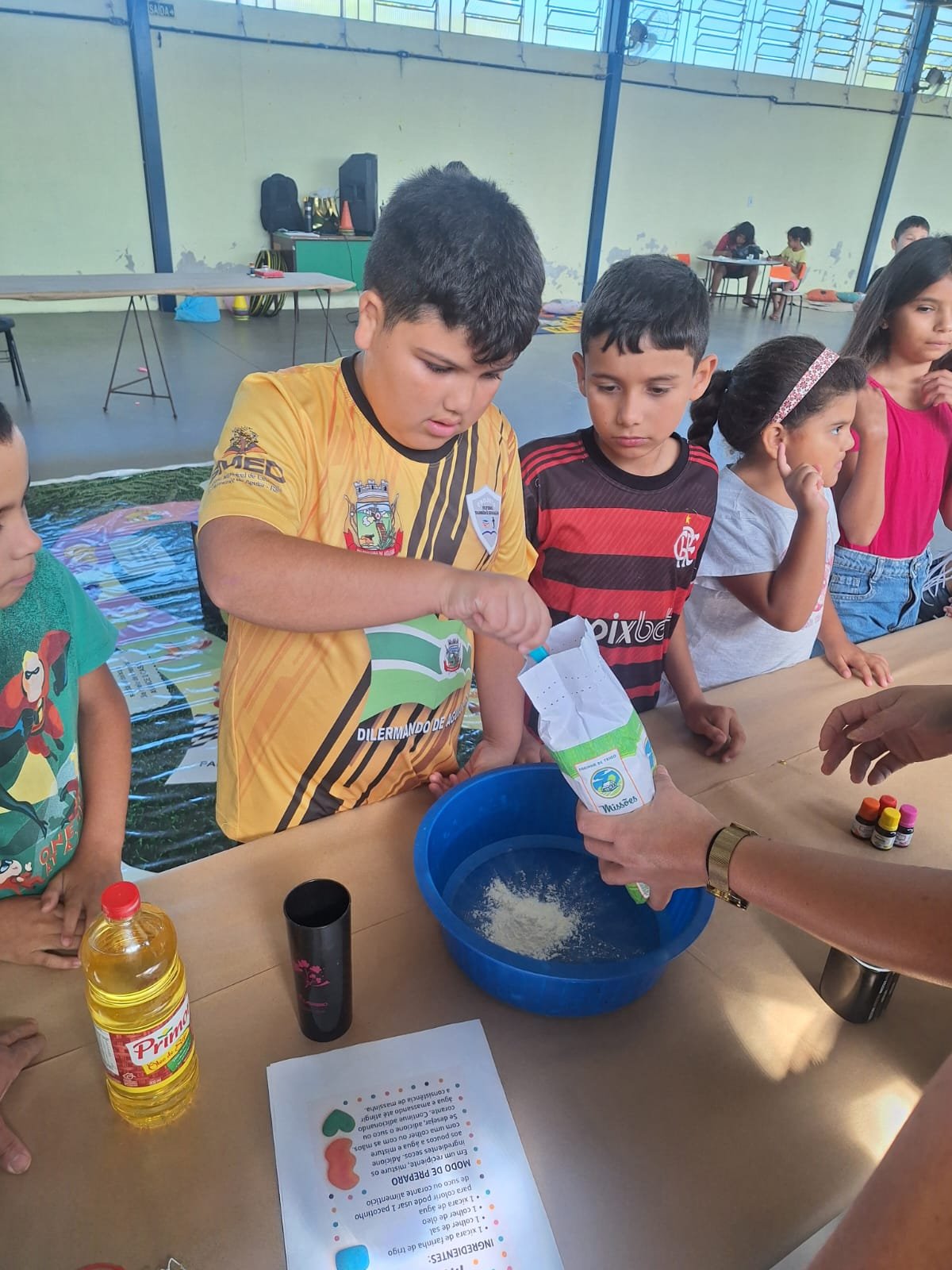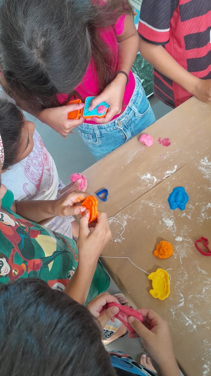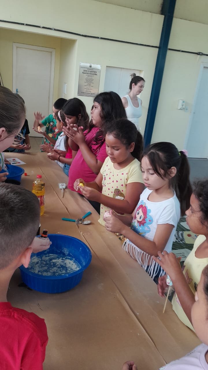 Neste primeiro dia, as atividades foram voltadas para as crianças de 05 a 11 anos, que participaram de diversas oficinas e dinâmicas. Entre as ações desenvolvidas estiveram a confecção de massa de modelar, atividades de pintura e desenhos, circuito de jogos matemáticos e brincadeiras com balões, além de momentos de música e dança, estimulando a criatividade, o raciocínio e a convivência em grupo.