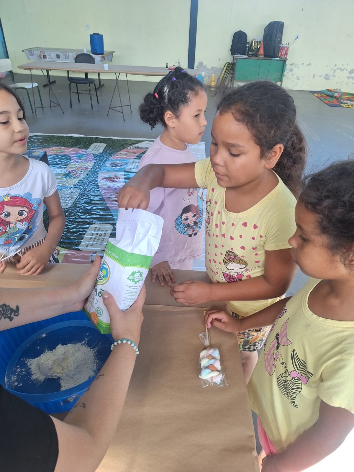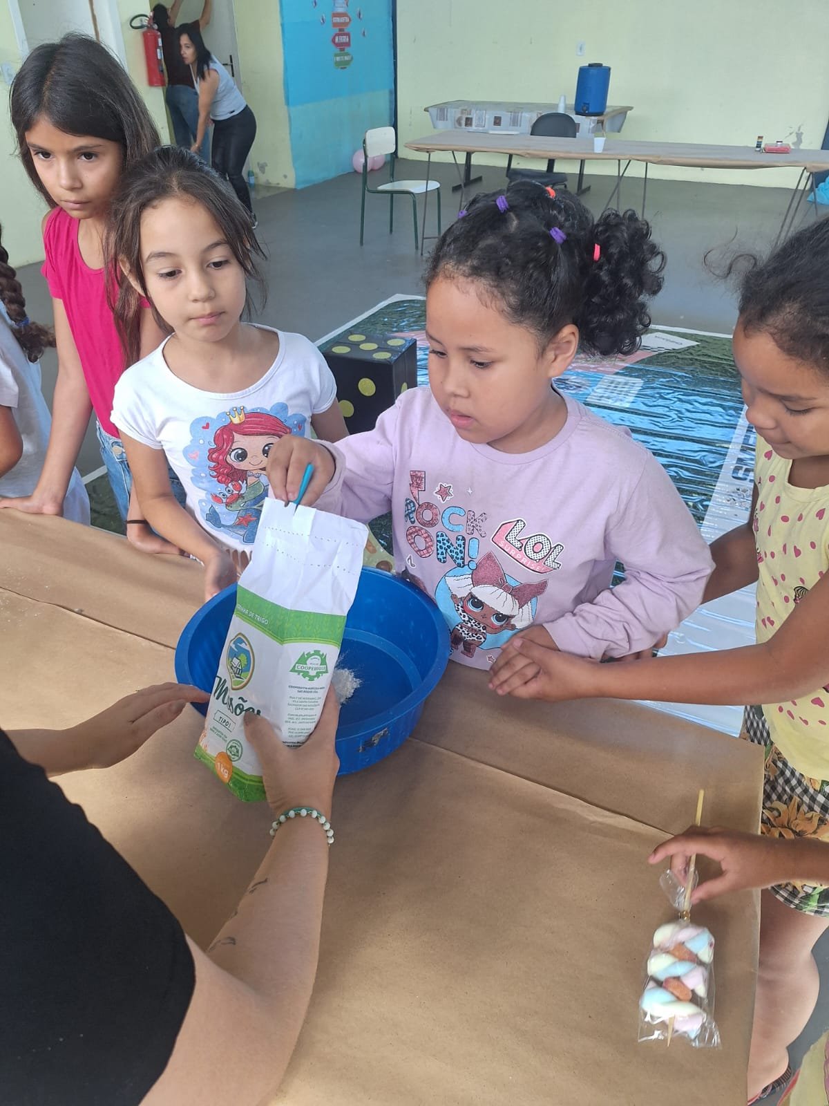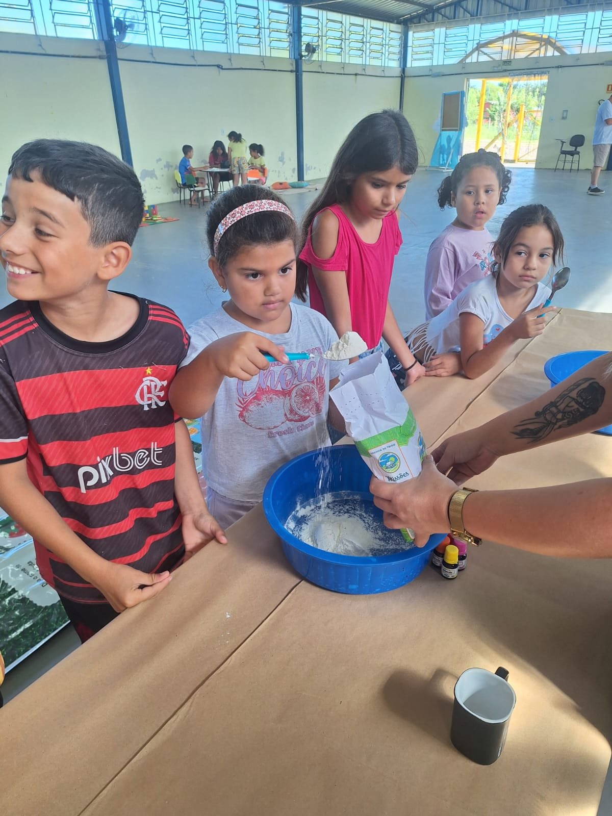 Neste primeiro dia, as atividades foram voltadas para as crianças de 05 a 11 anos, que participaram de diversas oficinas e dinâmicas. Entre as ações desenvolvidas estiveram a confecção de massa de modelar, atividades de pintura e desenhos, circuito de jogos matemáticos e brincadeiras com balões, além de momentos de música e dança, estimulando a criatividade, o raciocínio e a convivência em grupo.
