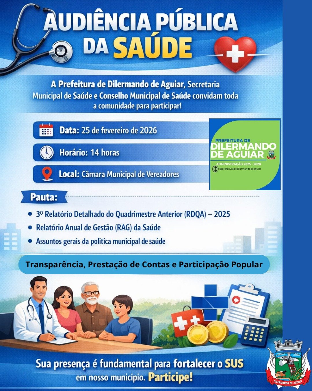 A Prefeitura Municipal de Dilermando de Aguiar, por meio da Secretaria Municipal de Saúde e do Conselho Municipal de Saúde, convida toda a comunidade para participar.