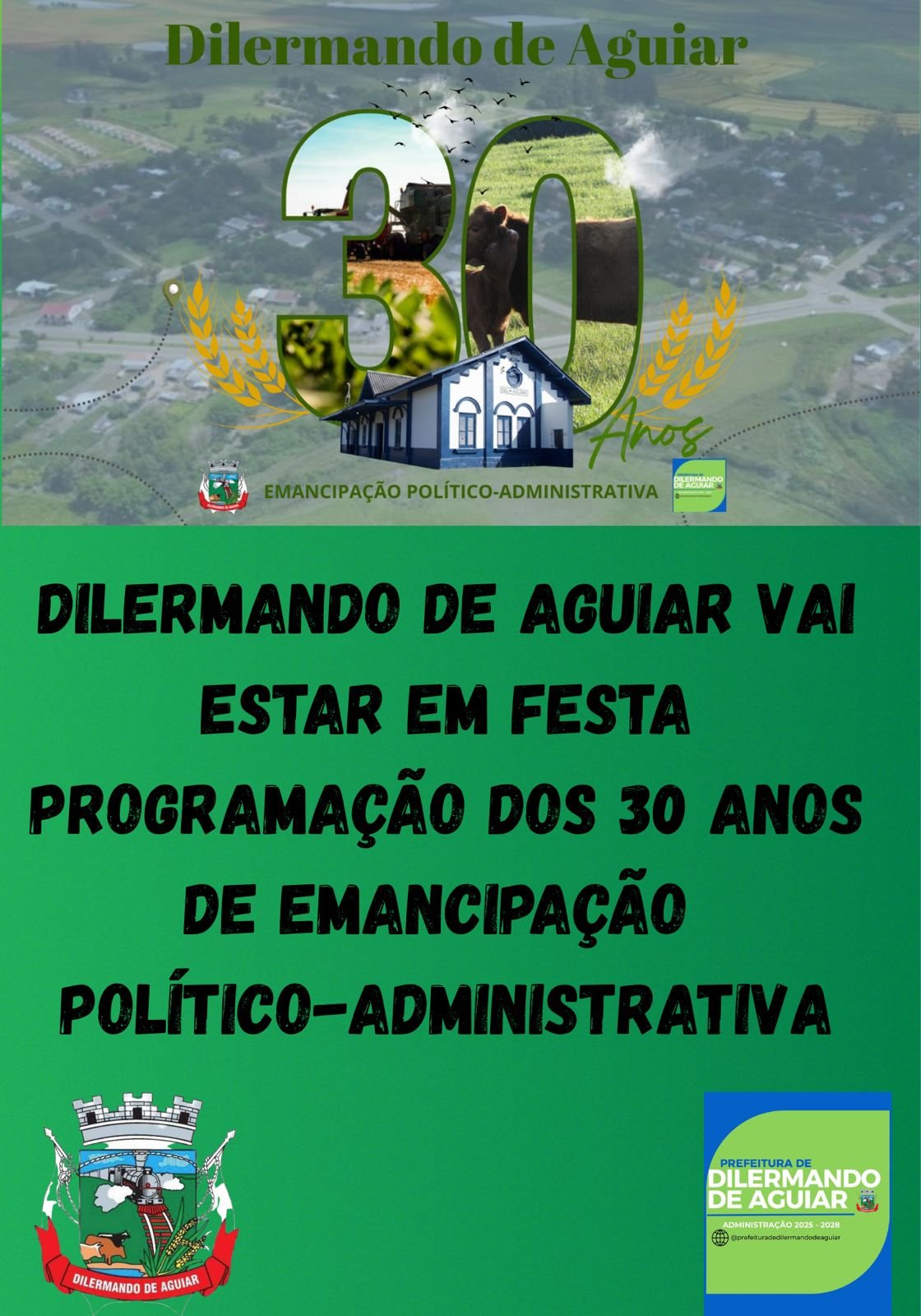A Administração Municipal de Dilermando de Aguiar convida toda a comunidade para participar das comemorações dos 30 anos de Emancipação Político-Administrativa do município!