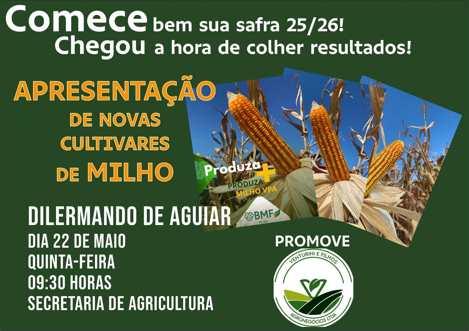 A Secretaria da Agricultura convida você para a Apresentação de Novas Cultivares de Milho, um momento de troca de conhecimento e oportunidades para impulsionar sua produção.