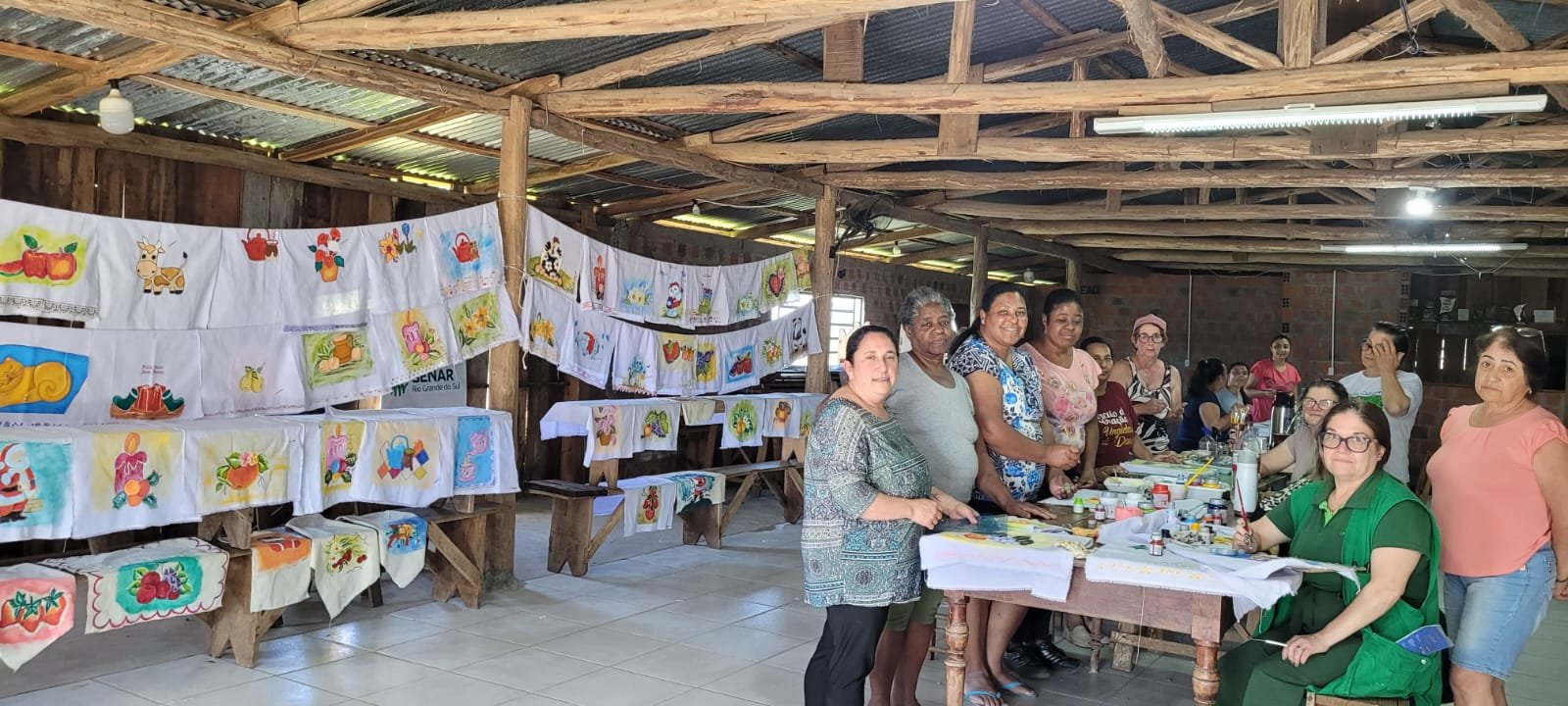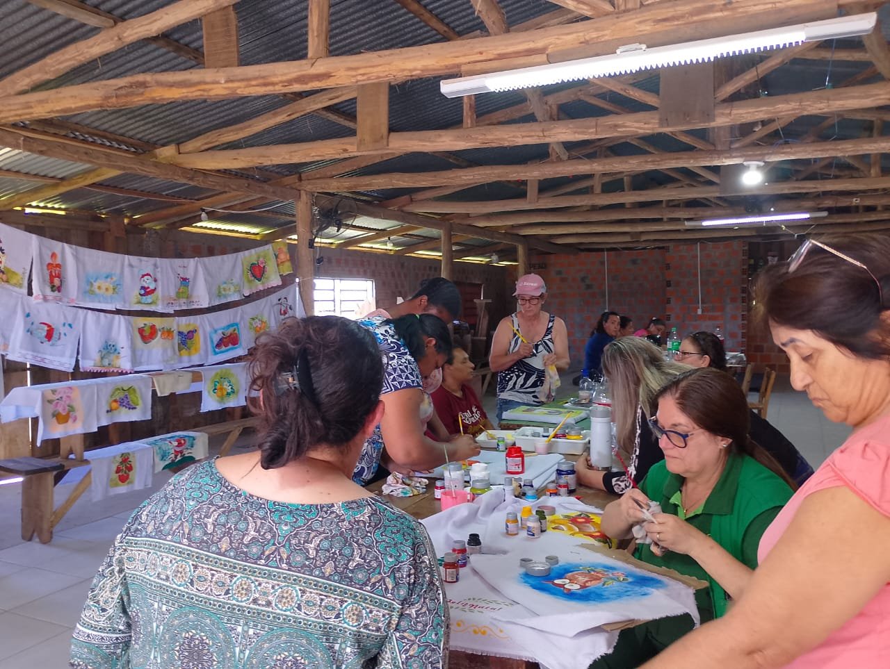 Aconteceu na última semana, entre os dias 03 e 07 de novembro, na localidade de Rincão do Pinheiro, o curso de Pintura e Tingimento, promovido pela Secretaria de Assistência, Desenvolvimento Social e Cidadania, CRAS, em parceria com o SENAR. A atividade contou com a presença de um grande número de participantes, que se dedicaram com entusiasmo à produção de belos trabalhos.