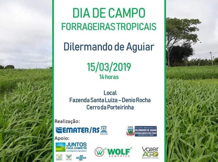 Na próxima sexta-feira (15), produtores, técnicos e estudantes poderão conhecer um pouco mais sobre as forrageiras tropicais.Um dia de campo, promovido pela Emater/RS em parceria com a secretaria municipal de agricultura e meio ambiente, apresentará índices produtivos de 15 forrageiras tropicais. Dos modelos que serão apresentados destacam-se asPanicunsas e as braquiárias Mavuno, Convert, MG – 5 e panicuns Aruana, Tamani e Mombaça.