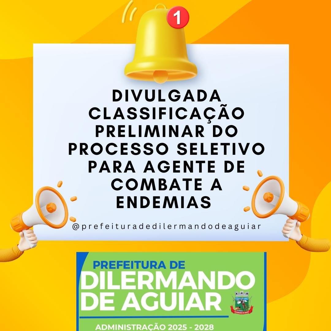 A Prefeitura de Dilermando de Aguiar, por meio da Comissão de Avaliação do Processo Seletivo Simplificado regido pelo Edital nº 006/2025, torna pública a classificação preliminar dos candidatos ao cargo de Agente de Combate a Endemias.