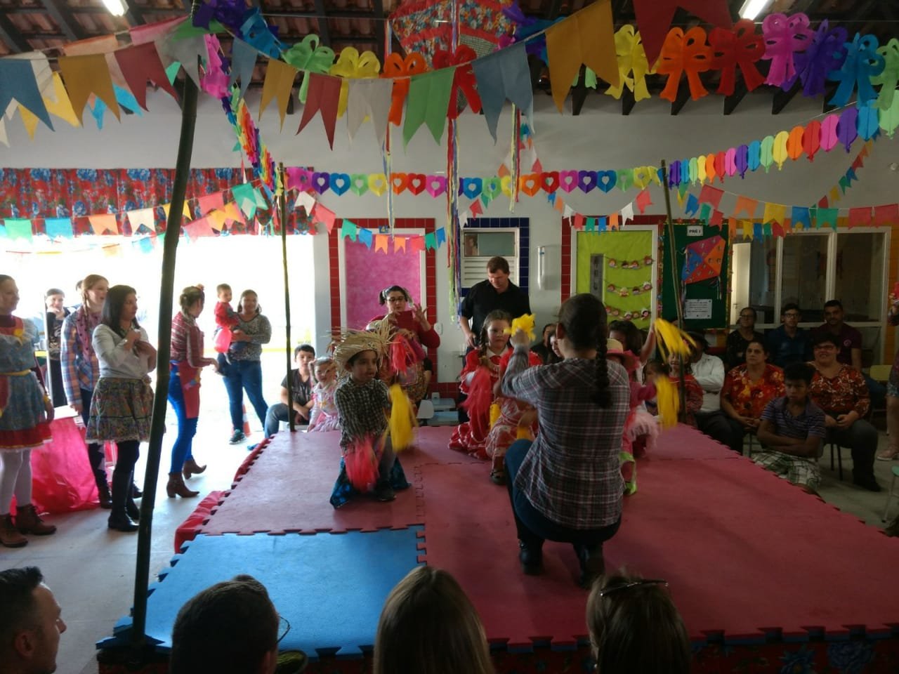 Aconteceu na tarde quente de sábado, dia 14 de julho, em Dilermando de Aguiar, a Festa Juliana da Escola Municipal de Educação Infantil Criança Feliz. Organizada pela equipe da gestão escolar, professores, auxiliares, funcionários e o Círculo de Pais e Mestres (CPM), a festa contou com a presença da comunidade e de autoridades locais que se encantaram com as apresentações artísticas e prestigiaram o evento com muita alegria e entusiasmo. A decoração do hall, onde ocorreram as apresentações, foi realizada com trabalhos produzidos pelos próprios alunos em atividades direcionadas com o tema juliano.