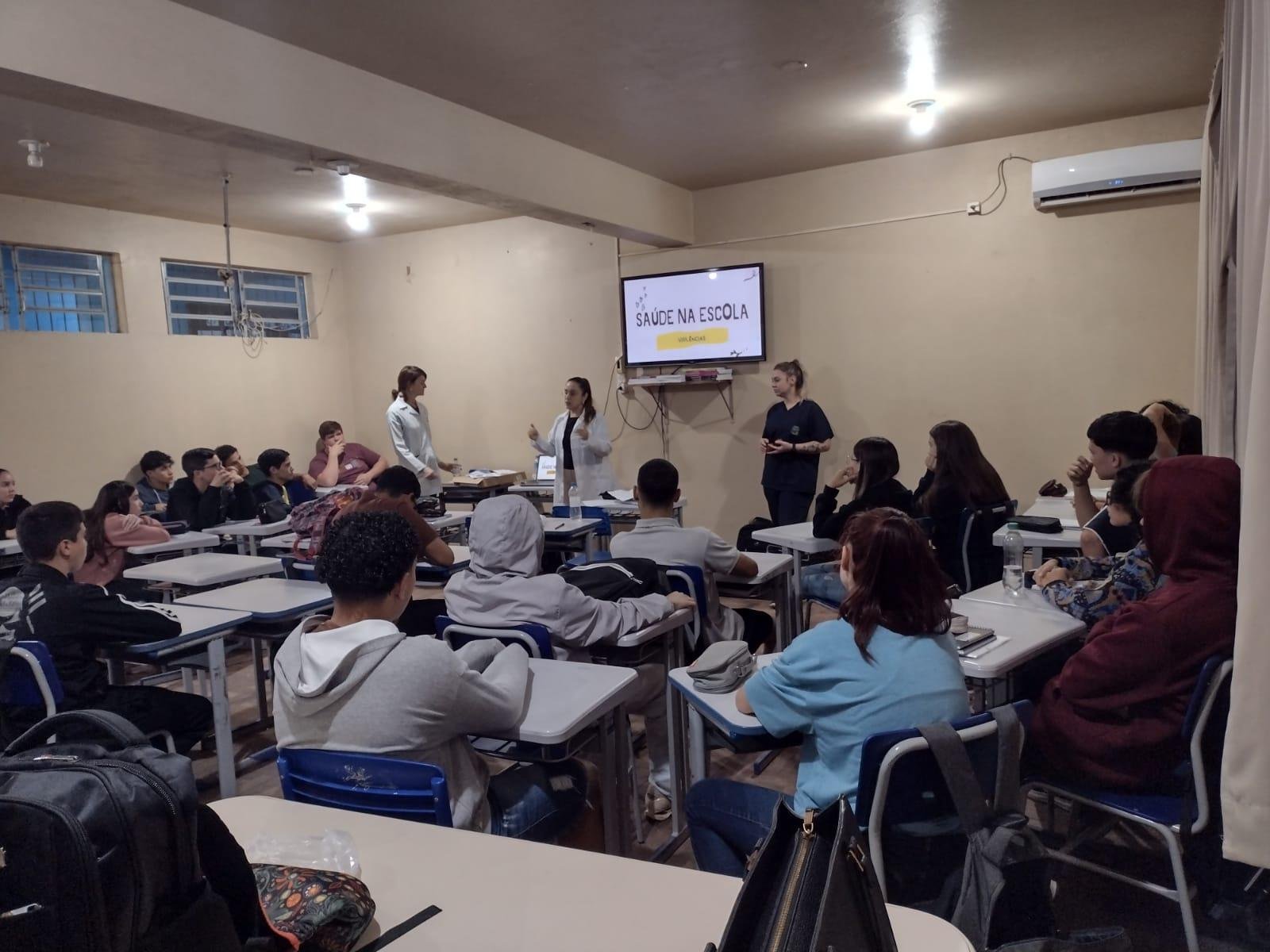 Na manhã de terça-feira (06), a equipe de saúde da Estratégia Saúde da Família (ESF), composta pela Dra. Carla Souza, a enfermeira Anne Louize Xavier, a técnica de enfermagem Michele Stribe e pelos Agentes Comunitários de Saúde, Elisandra Gonçalves e Cândido Lima, realizaram uma importante atividade educativa do Programa Saúde na Escola (PSE). A ação teve como foco a temática dos diferentes tipos de violência, com o objetivo de informar, sensibilizar e promover a prevenção entre os estudantes.