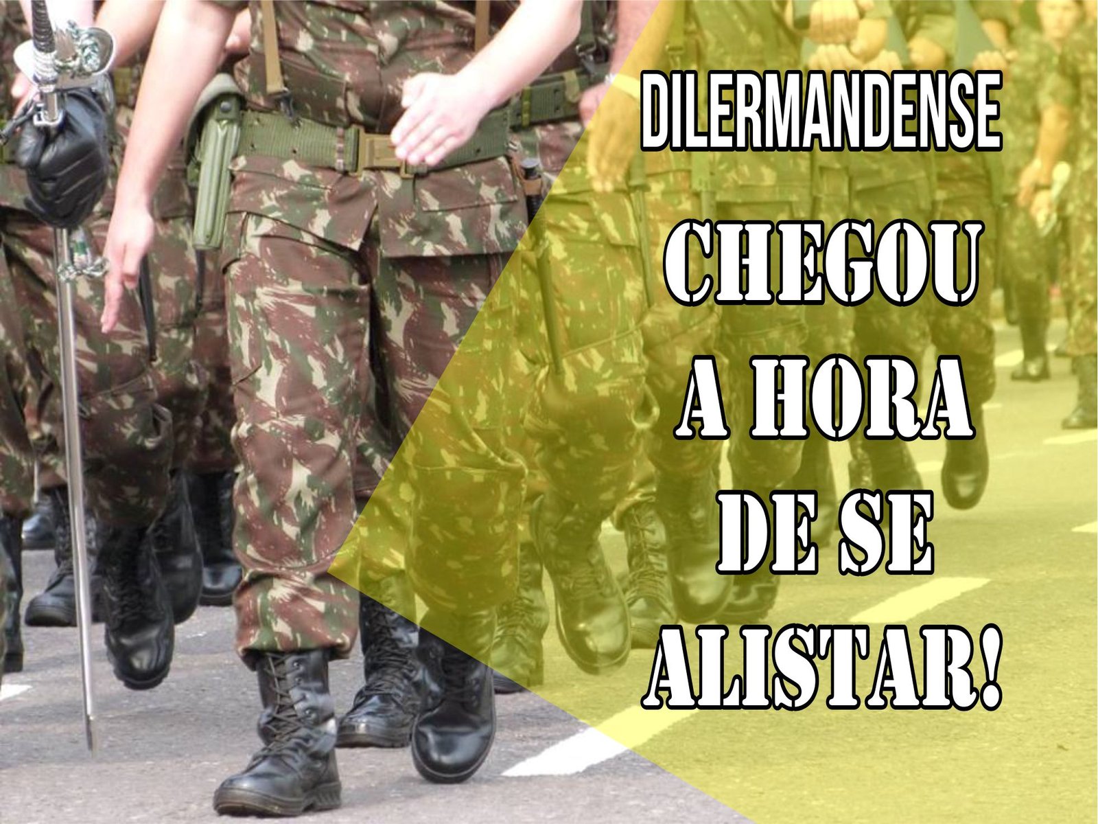 Os jovens dilermandenses devem acessar o site www.alistamento.eb.mil.br ou comparecer à Junta de Serviço Militar (JSM), anexo ao prédio da prefeitura municipal – RH, munidos de originais de um documento de identificação (certidão de nascimento ou carteira de identidade ou de motorista ou de trabalho), duas fotos 3×4 recentes e comprovante de residência. Os que moram no exterior devem procurar os consulados ou as embaixadas do Brasil para fazer a inscrição. |