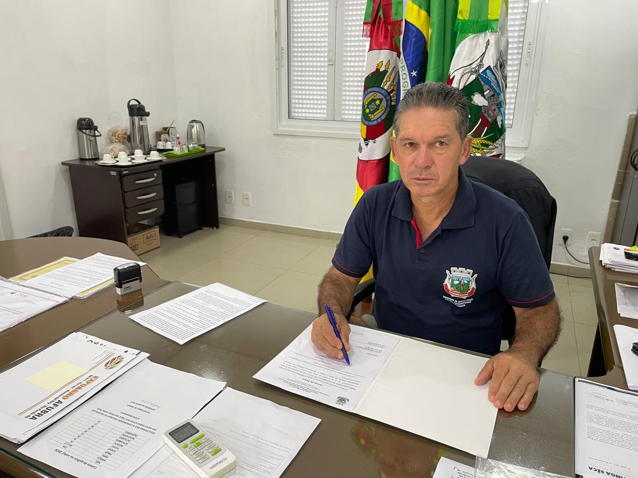 Na manhã desta terça-feira, 17 de março, o prefeito Jorginho Saidelles e o vice-prefeito Marcelo Dotto realizaram a posse de Fernando Rosa de Azambuja, nomeado pela Portaria nº 046/2026/GP, para exercer o cargo efetivo de odontólogo, padrão 10, nível I, Classe A, estando devidamente habilitado em concurso público.