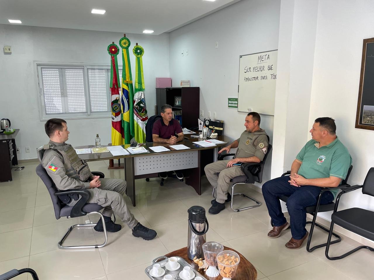 Eduardo Tassinari assumiu o comando na última semana, após a saída da sargento Rosimar da Rocha Machado, que passou para a reserva (aposentadoria). Durante o encontro, o novo comandante destacou a importância da continuidade do trabalho já desenvolvido no município, reforçando o compromisso com a segurança da população.
