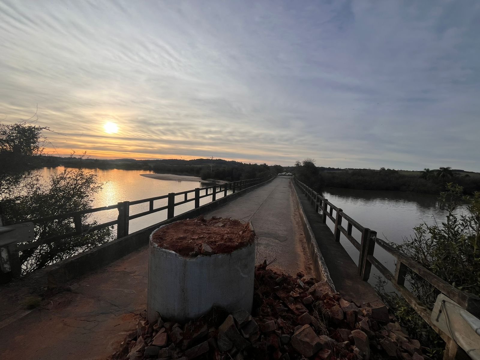 A obra de aterro na ponte que liga Dilermando de Aguiar a São Pedro do Sul segue dentro do prazo estabelecido no contrato firmado pela administração anterior.