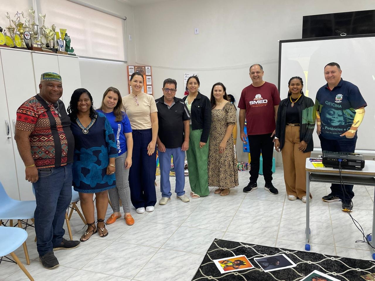 Na manhã de sexta-feira, 14 de novembro, a EMEF Valentim Bastianello promoveu a Oficina Afro e Indígena, Sabores e Saberes, desenvolvida no projeto das turmas do 4º ano da professora Rosana Teixeira e do 5º ano da professora Luciana Prevedello, juntamente com a monitora Michele Medeiros, em uma programação especial dedicada ao conhecimento e à valorização da diversidade cultural. A atividade contou com exposição de trabalhos produzidos pelos alunos, propostas didáticas sobre história e identidade, além de uma palestra com representantes do NEABI.
