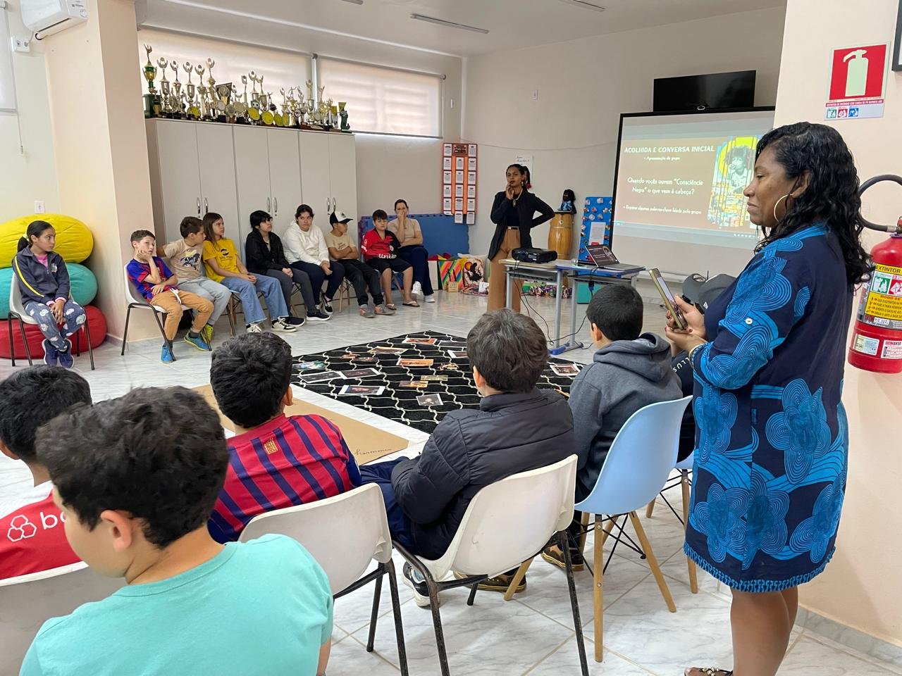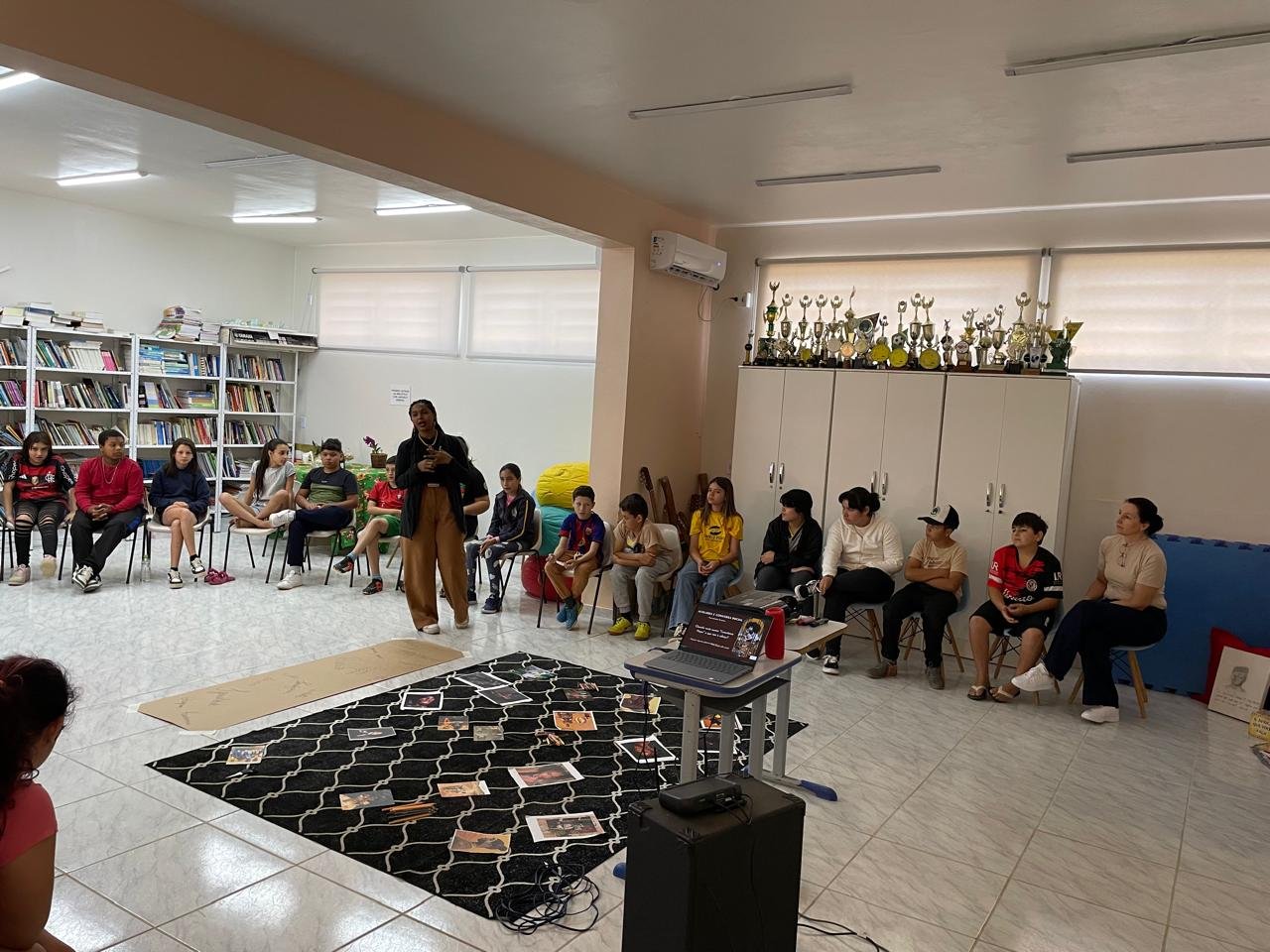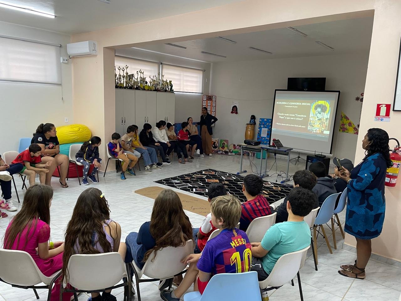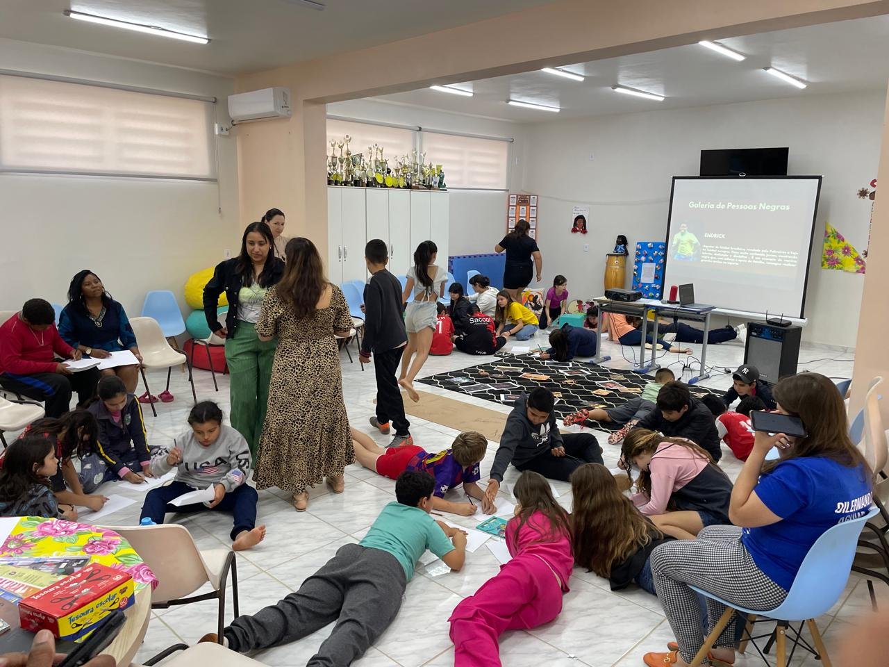 Na manhã de sexta-feira, 14 de novembro, a EMEF Valentim Bastianello promoveu a Oficina Afro e Indígena, Sabores e Saberes, desenvolvida no projeto das turmas do 4º ano da professora Rosana Teixeira e do 5º ano da professora Luciana Prevedello, juntamente com a monitora Michele Medeiros, em uma programação especial dedicada ao conhecimento e à valorização da diversidade cultural. A atividade contou com exposição de trabalhos produzidos pelos alunos, propostas didáticas sobre história e identidade, além de uma palestra com representantes do NEABI.