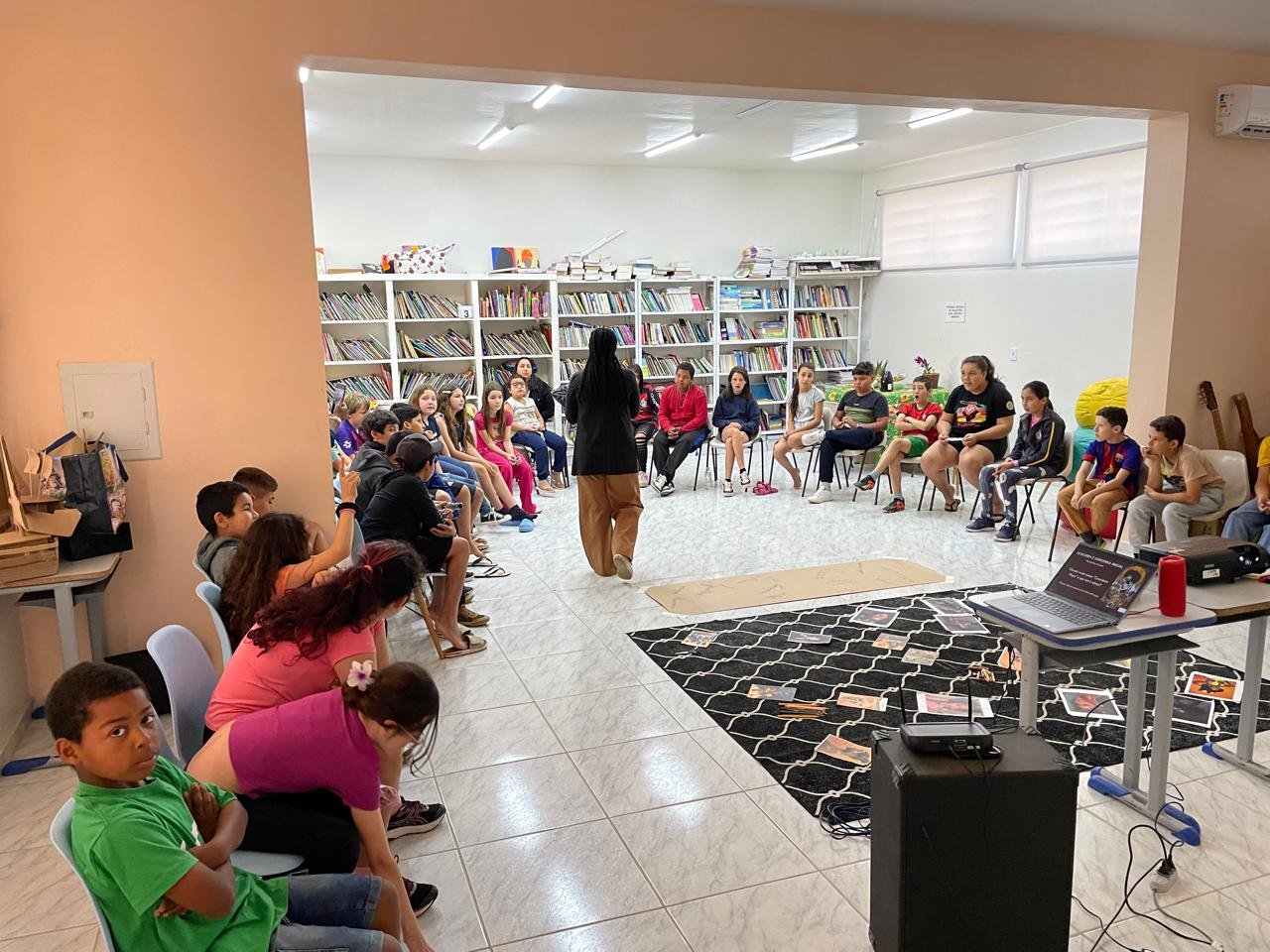 A professora Jacileine Aguiar e João Veiga, estudante de jornalismo da UFSM, conduziram a palestra trazendo reflexões sobre ancestralidade, pertencimento e respeito às tradições afro-brasileiras. Ambos, integrantes do NEABI, destacaram a importância de espaços educativos que incentivem o diálogo e ampliem o entendimento sobre as contribuições desses povos para a formação do Brasil.