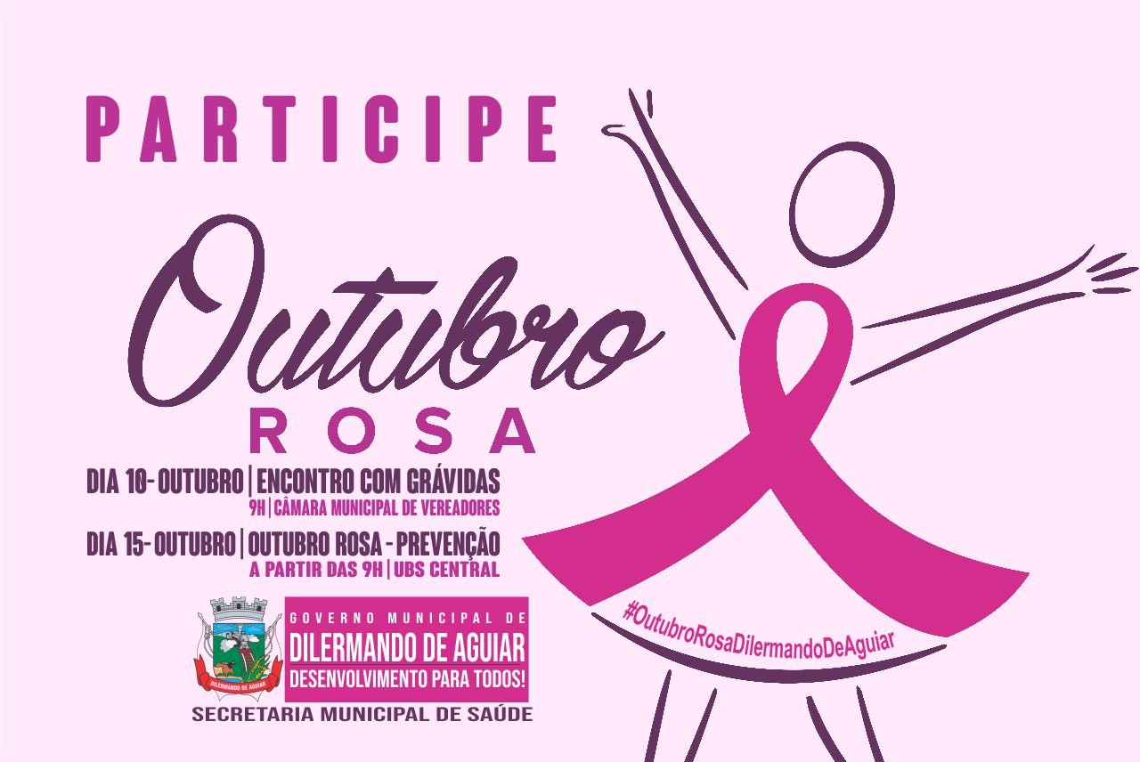 A secretaria municipal de saúde está preparando várias atividades para as mulheres dilermandenses neste mês de outubro. No dia 10, dia da gestante, a secretaria de saúde realizará um encontro no anexo da câmara municipal de vereadores, às 9hs, com as grávidas residentes em Dilermando de Aguiar.