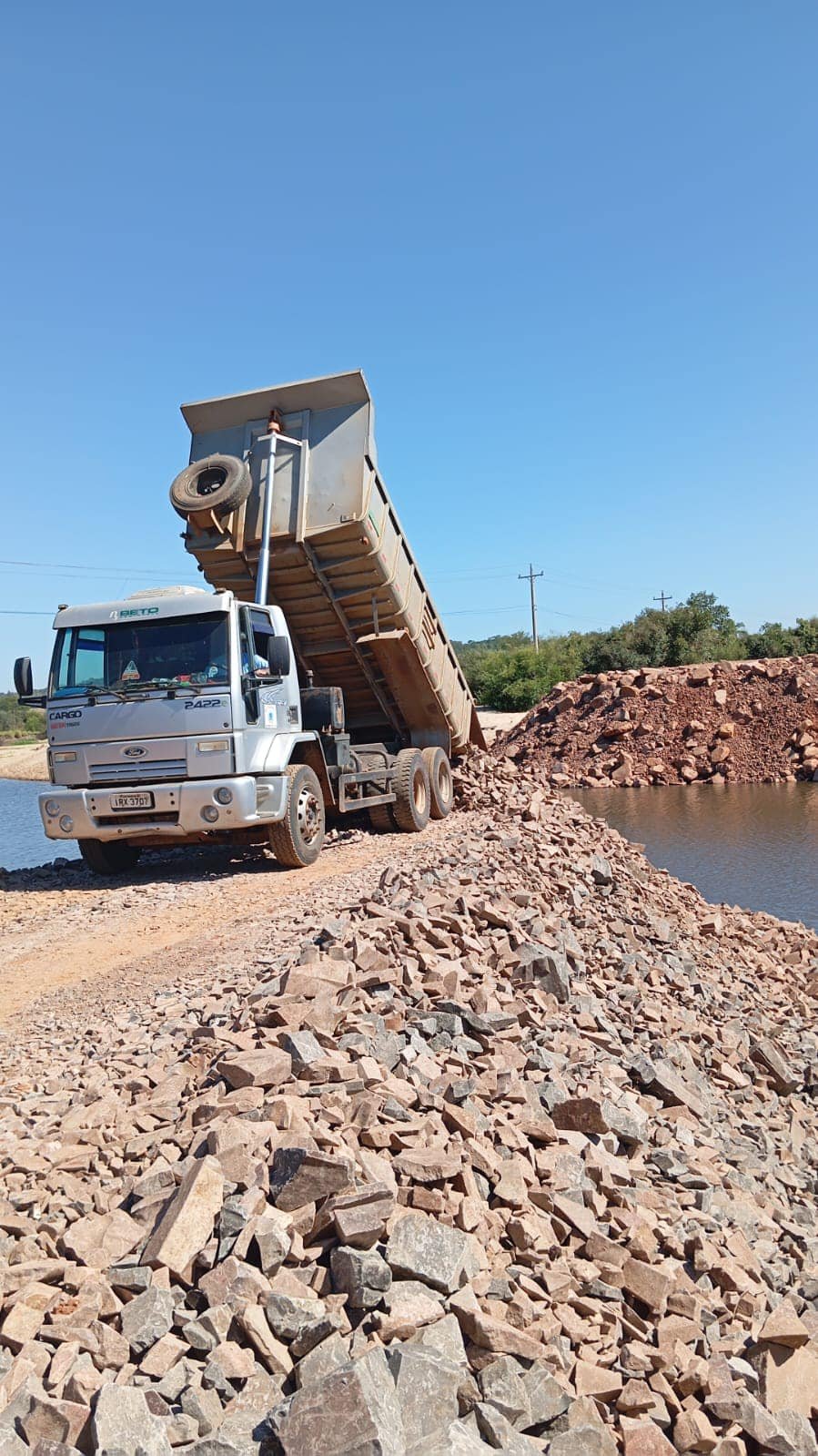 Neste final de semana (8) a Secretaria de Obras de Dilermando de Aguiar intensificou os trabalhos de aterro para a instalação da ponte provisória na divisa com São Pedro do Sul. As atividades ocorrerão no sábado e no domingo, com o objetivo de garantir a segurança e a mobilidade da população local.
