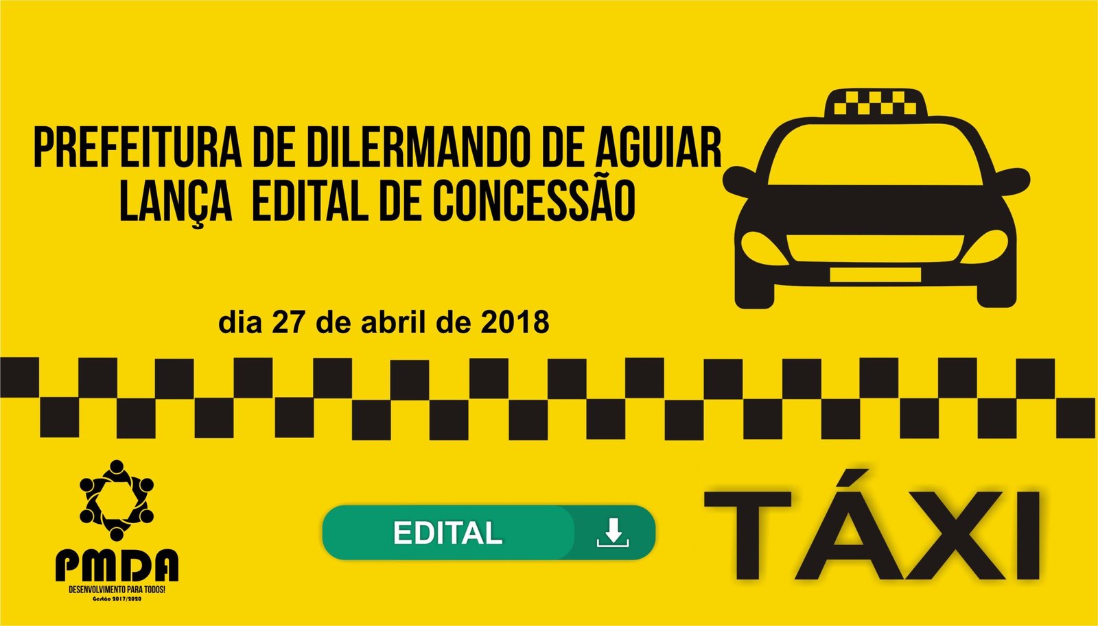 A prefeitura municipal de Dilermando de Aguiar torna público, para conhecimento dos interessados, que realizará no dia 27 de abril de 2018, às 9h, no Departamento de Compras e Licitações da Prefeitura, uma licitação na modalidade de concorrência para a permissão da exploração do serviço público de transporte individual de passageiros em veículos automotores de aluguel no município. De acordo com o edital são dois pontos em aberto: Um atendendo a sede do município e o outro atendendo o interior.