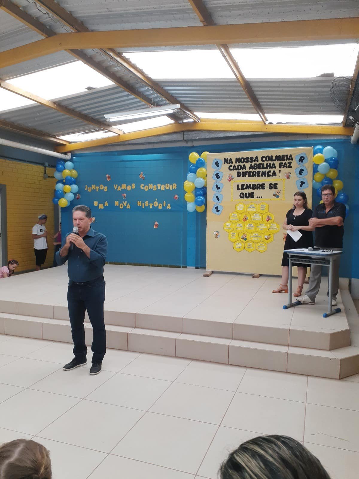 Prefeito destacou as reformas que continuarão sendo feitas na escola (pinturas, consertos, …), proporcionando a professores e alunos um ambiente harmonioso e com mais qualidade, destacou também a valorização da administração com os professores, pagando o piso nacional do magistério. O diretor Pedro Adamar e a vice-diretora Luana Pinheiro, acolheram os alunos, apresentaram o quadro de professores e de funcionários, desejaram um feliz ano letivo, e se colocando a disposição da comunidade escolar.