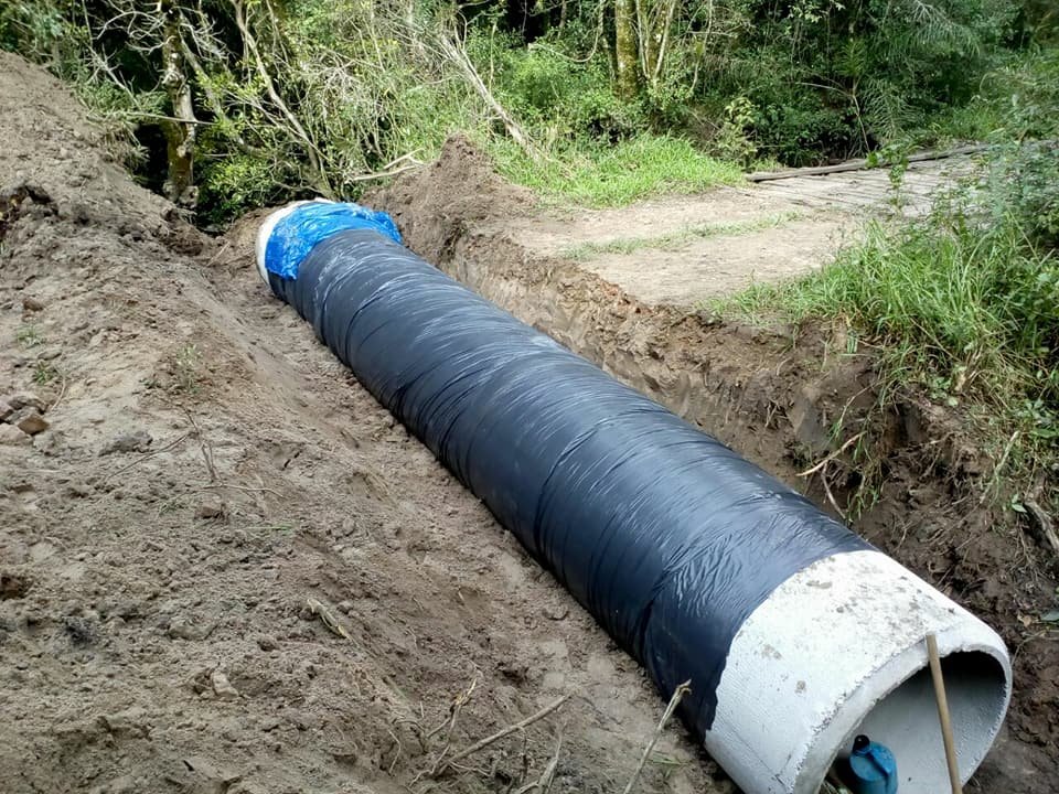 A secretaria municipal de obras completou no sábado, dia 05 de maio, a construção de um bueiro na localidade de Banhadinhos. O bueiro substituirá uma ponte de madeira danificada em decorrência das últimas chuvas. Para a realização da obra foram usados tubos de concreto armado de 1 metro de diâmetro, uma manta protetora e posteriormente foi realizado o empedramento e o patrolamento do trecho.