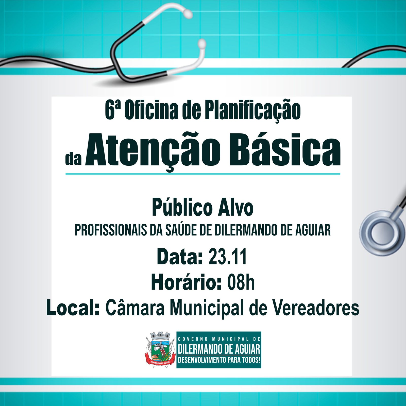 A Prefeitura Municipal de Dilermando de Aguiar segue com o compromisso de fortalecer e melhorar os serviços de saúde prestados à comunidade dilermandense. Assim realizará no dia 23 de novembro a 6ª e última Oficina da Planificação da Atenção Básica.