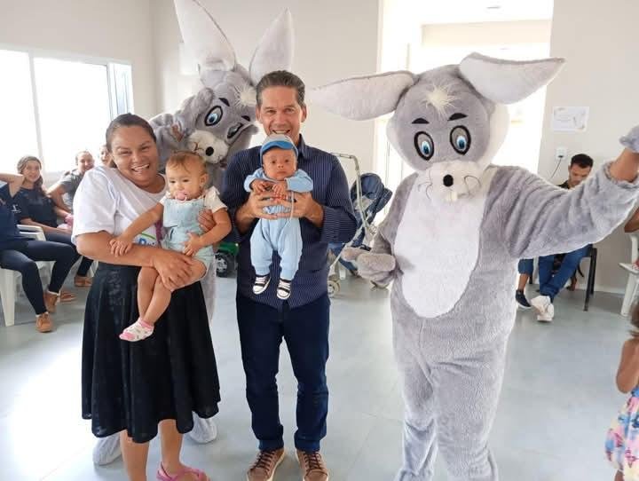 Após os cuidados com a saúde, a tarde se transformou em um momento de encanto com a chegada do Coelho da Páscoa. Em um ambiente leve e festivo, as crianças participaram de um momento de socialização, saborearam um lanche especial e receberam cestas de Páscoa preparadas com dedicação. A ação trouxe não apenas alegria às famílias, mas também reforçou o compromisso da saúde pública com o desenvolvimento infantil, integrando saúde, afeto e cidadania em uma vivência única e inesquecível para os pequenos.