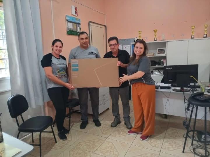Na manhã desta quinta-feira, a E.M.E.F. Valentim Bastianello recebeu um gesto de carinho e solidariedade que tocou a todos. Os pais da aluna Andreliza de Brito da Silva, o senhor Alberi Silva da Silva e a senhora Elizandra da Costa Brito, doaram uma TV de 32 polegadas para a escola. O televisor será utilizado como prêmio de uma rifa organizada pelo 9º ano, com o objetivo de arrecadar fundos para a formatura de final de ano da turma.