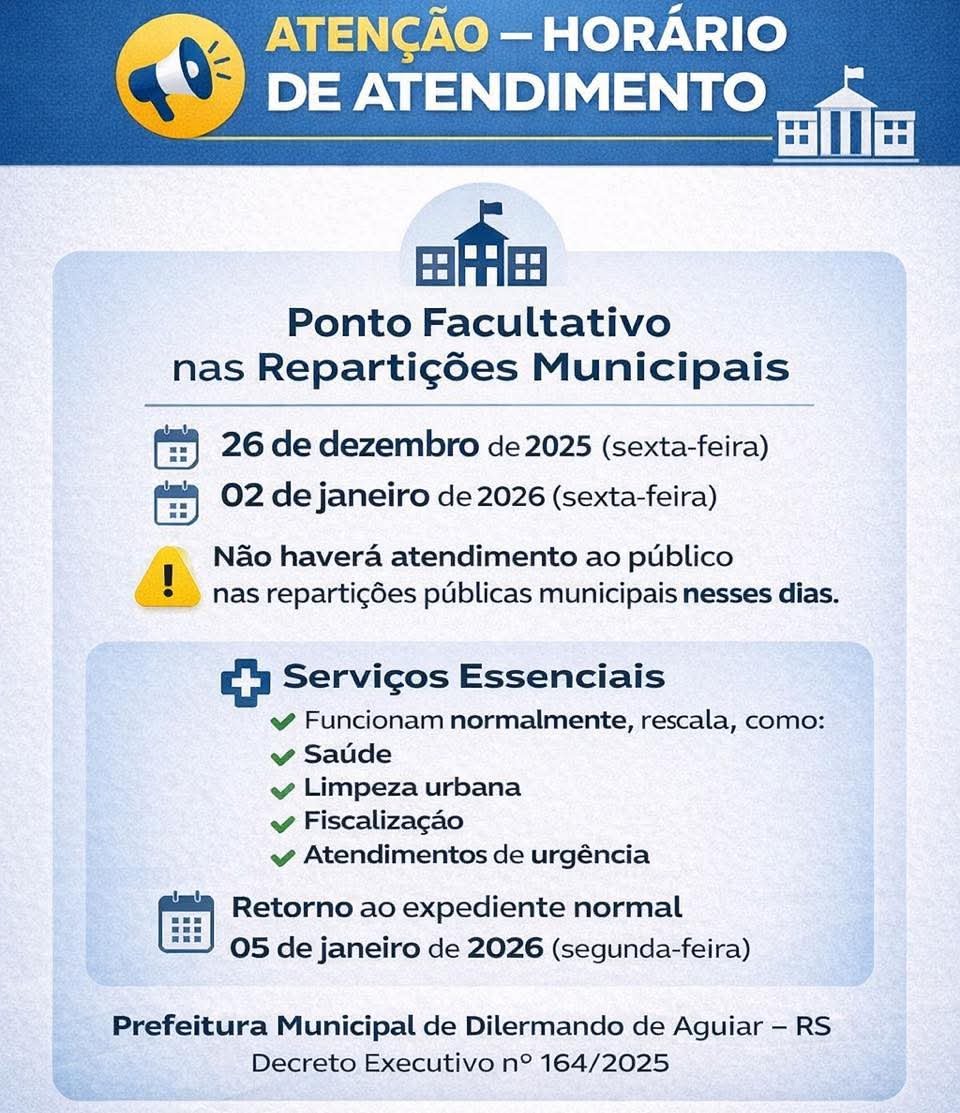 O retorno ao expediente normal acontece no dia 05 de janeiro de 2026 (segunda-feira)....